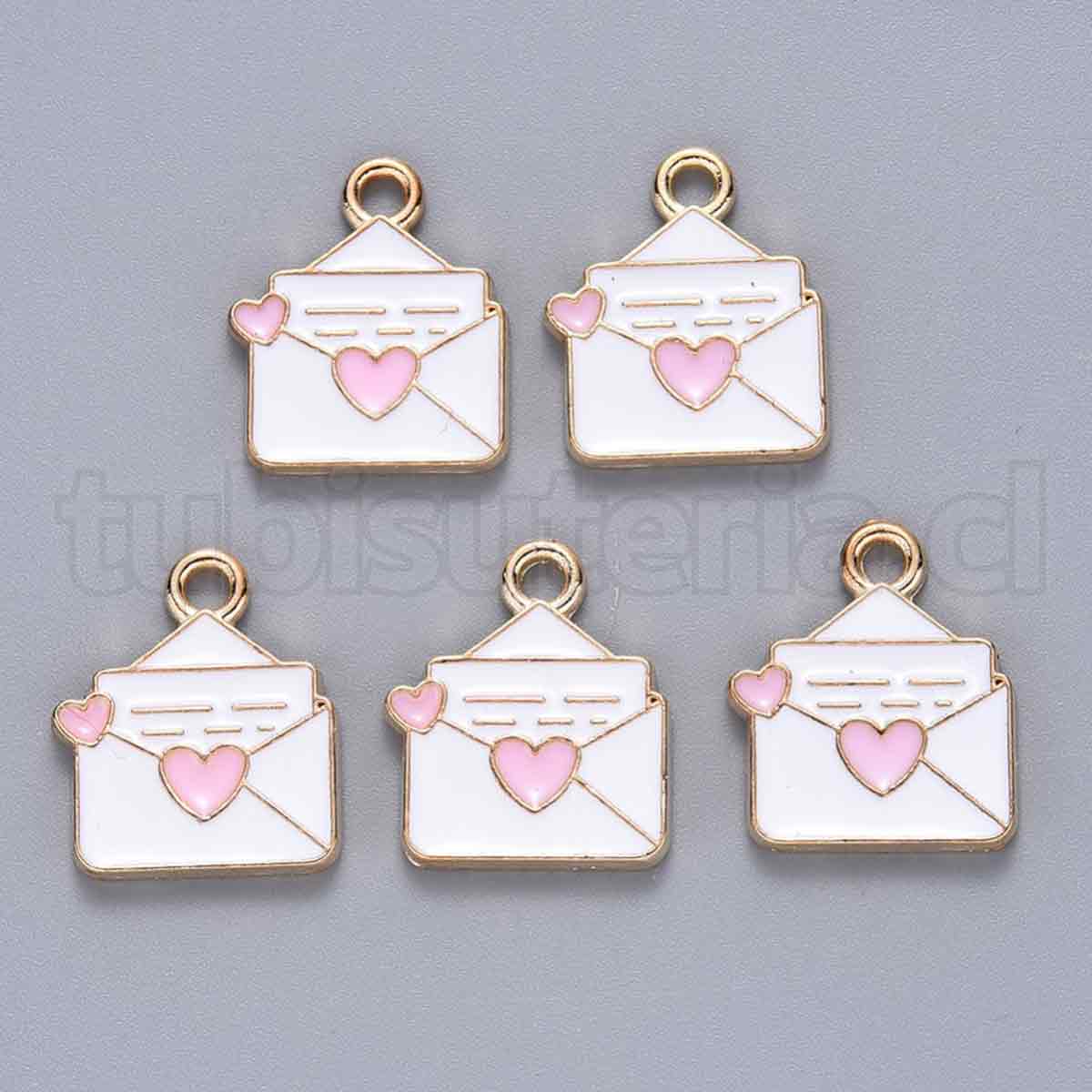 Colgantes en forma de carta con corazón en aleación esmaltada.